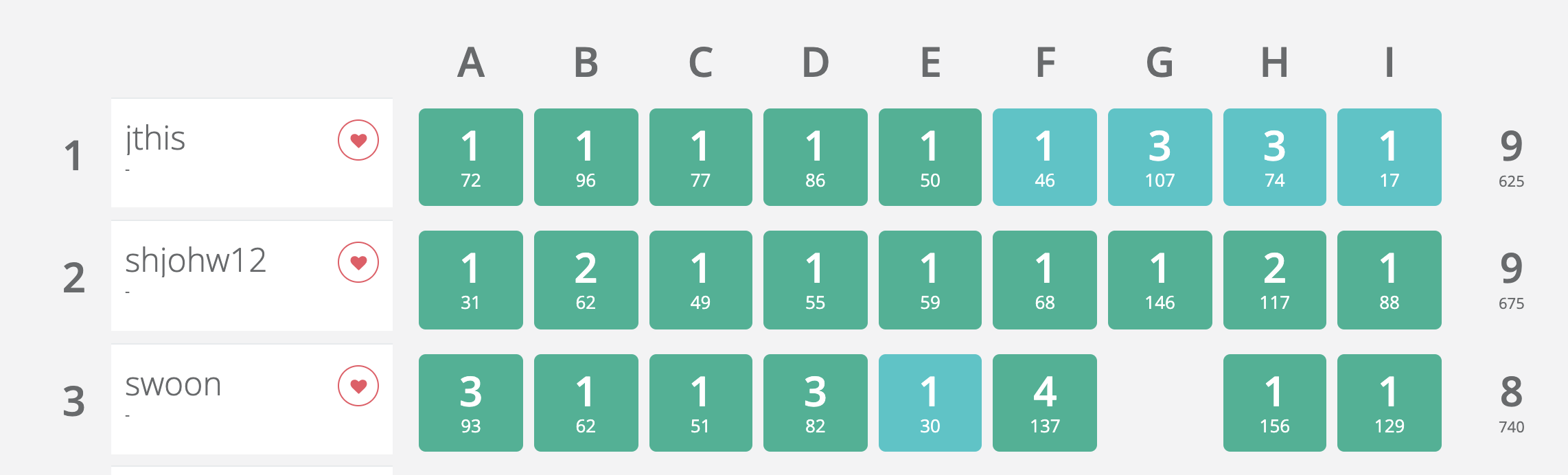 하다보니까 8문제를 풀어서 3등이 되었다.