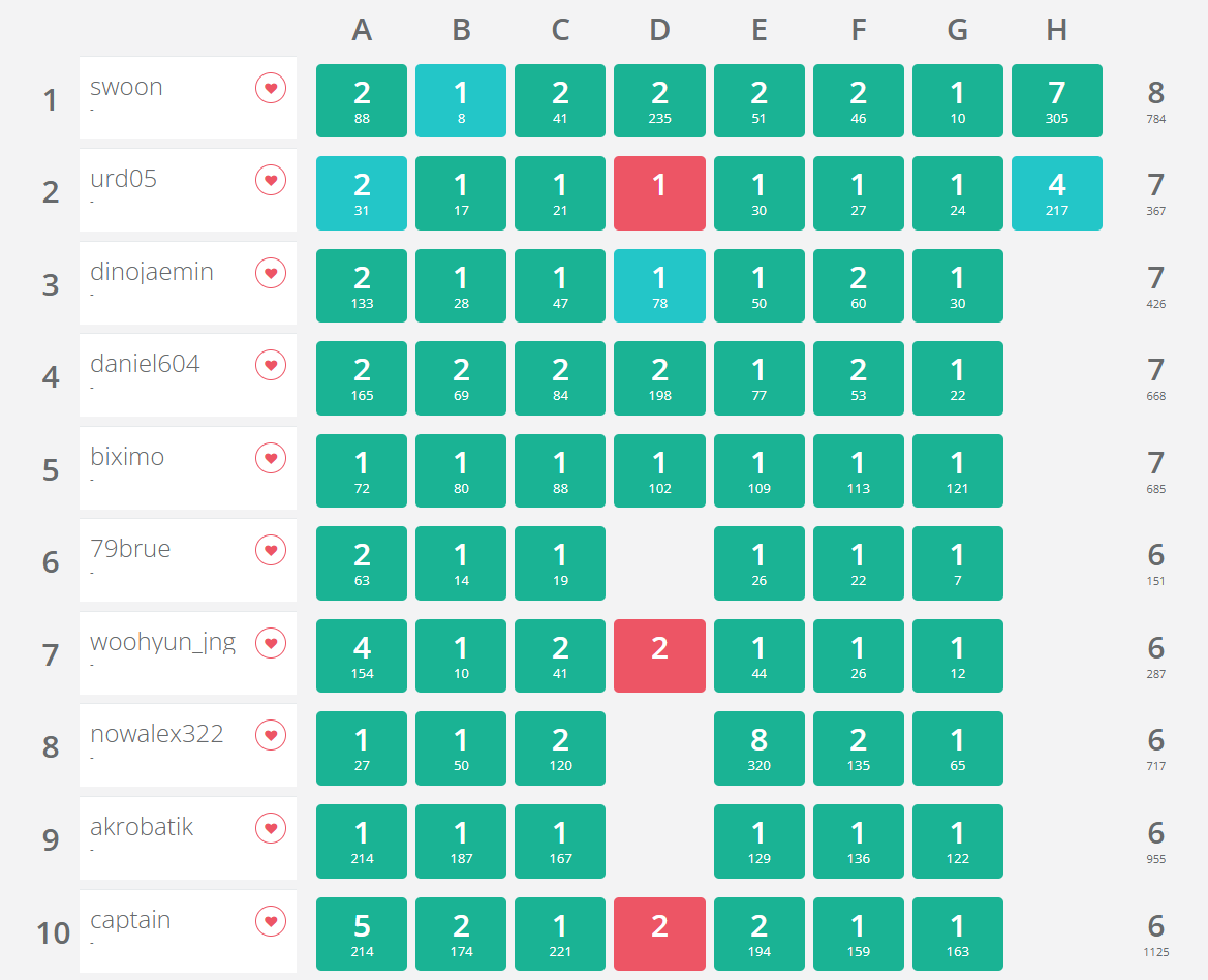 대회 운영해주신 출제, 검수, 운영분들 모두 수고많으셨습니다.