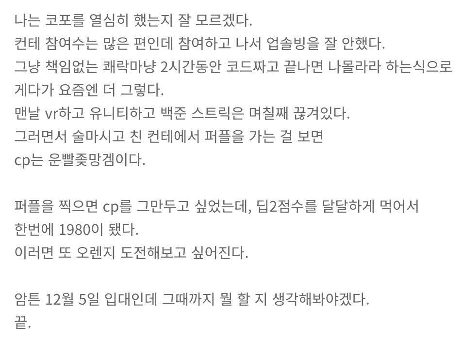 이 코드포스라는 시스템 자체가 운빨이라는 아주 피가 들끓는 이야기를 한다.